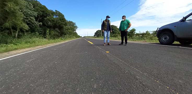 Maico Moreno, subgobernador de la provincia Obispo Santistevan, junto a técnicos de la Gobernación cruceña y la empresa CONVIAL S.R.L., realizaron una inspección ocular al camino desde el ingreso que era una zona crítica por los constantes baches que hoy ha sido bacheado y recapeado todo el tramo.