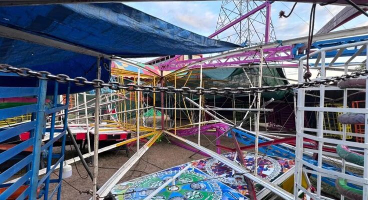 La noche del martes se produjo la caída de una rueda de la fortuna en la feria de las Alasitas que están instaladas en la zona del Cambódromo, en la capital cruceña. El suceso quedó registrado en video y fue publicado en redes sociales.
